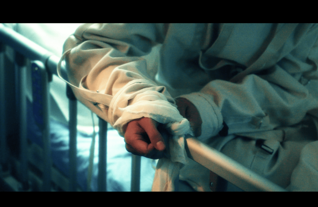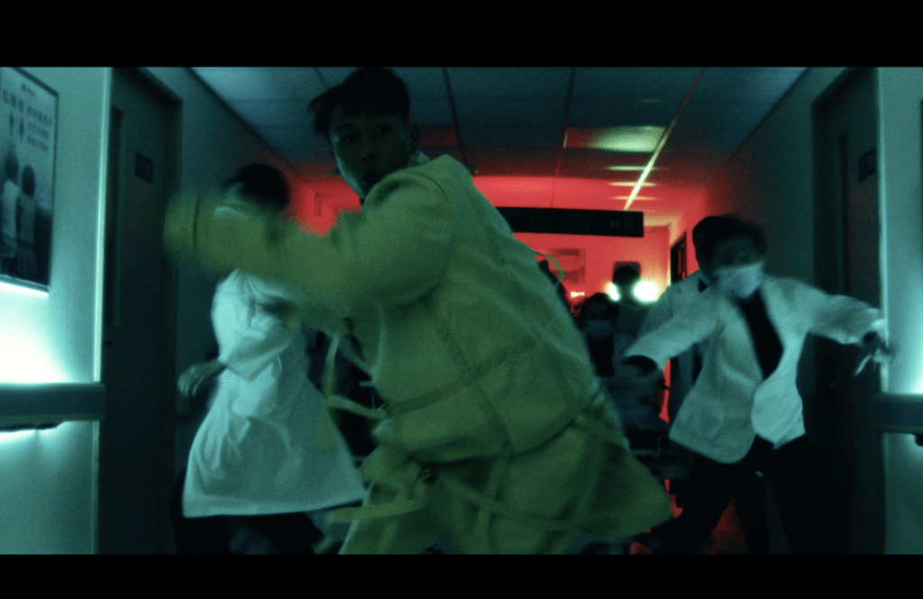 「一個穿束縛衣的人在醫院發了瘋逃跑,只為了抽上一根煙。」